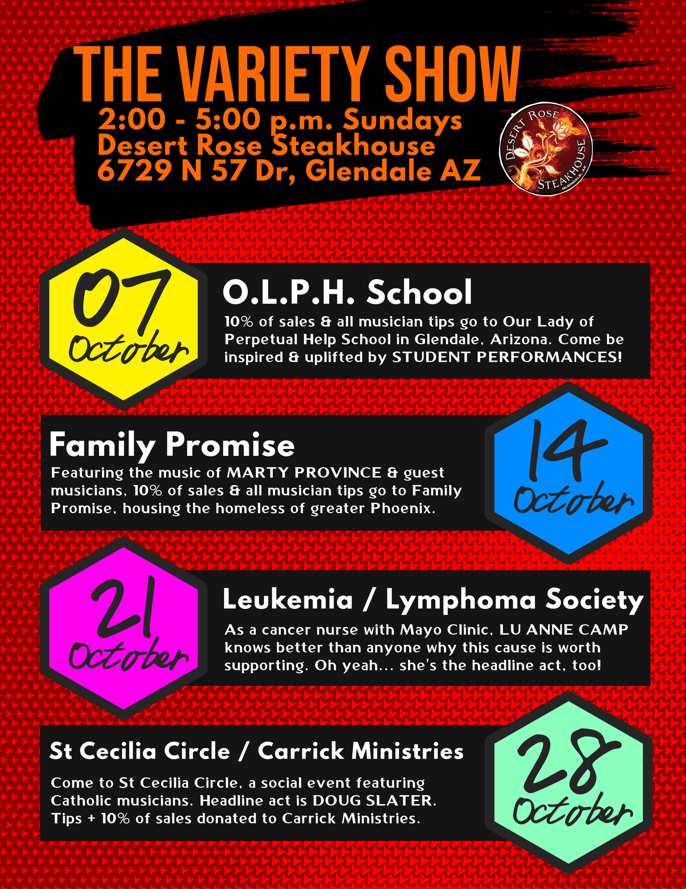 promotions, sound system, bookings, and decorations.